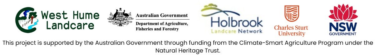 This project is a collaboration between West Hume Landcare, Holbrook Landcare Network, Charles Sturt University, NSW DCCEEW and Murray Local Land Services.